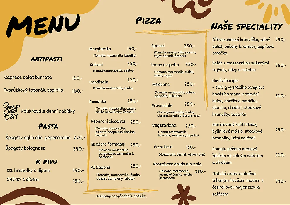 Naše pizzerie v Prostřední Bečvě je ideálním místem pro všechny milovníky pravé italské kuchyně. Z našeho menu si vybere každý – od klasických italských pizz, jako je Margherita nebo Prosciutto, až po speciality vytvořené na míru našim hostům.