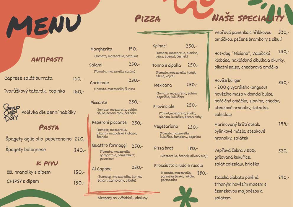 Vítejte v pizzerii MICIANO, která se nachází v srdci Beskyd, v Prostřední Bečvě. Nabízíme vám autentickou italskou pizzu, připravovanou s láskou v tradiční peci na dřevo. Naše pizzerie je ideálním místem pro příjemné posezení s rodinou, přáteli nebo kolegy.
